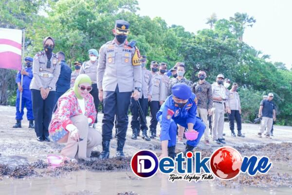 Doc.Photo Kapolres Situbondo AKBP Andi Sunjaya Bersama Istri Ny.Marcella Andi Sinjaya saat Melepas Tukik di Pantai Bama