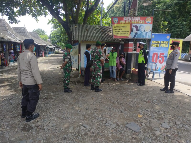 Kegiatan patroli dipimpin Kapolsek Bungatan Iptu Sukamto, Spd bersama personel gabungan TNI, Polri dan Satpol PP mengecek secara langsung pengaplikasian peduli lindungi bagi para pengunjung atau wisatawan yang akan masuk wisata pantai Pasir Putih.