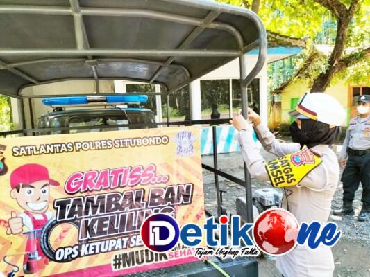 Situbondo, detik1.com – Bagi para pemudik yang melintas di jalur Pantura Situbondo bisa memanfaatkan layanan jasa tambal ban gratis yang disediakan oleh Satlantas Polres Situbondo.