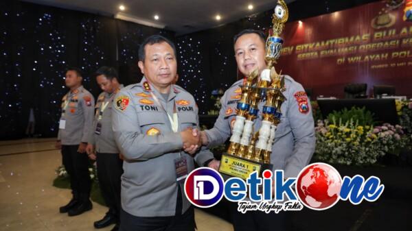 Penghargaan tersebut diserahkan langsung oleh Kapolda Jatim, Irjen Pol Dr. Toni Harmanto,M.H kepada Kapolres Gresik AKBP Aditya Panji Anom usai kegiatan Anev Sitkamtibmas di Jember (10/05/2023).
