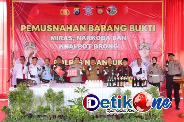 Polres Nganjuk Musnahkan Barang Bukti Sitaan Narkoba, Miras dan Knalpot Brong