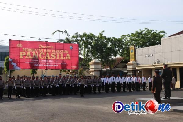 Pamekasan, detik1.co.id // Polres Pamekasan menggelar Upacara Peringatan Hari Kesaktian Pancasila dengan tema “Bersama Pancasila Kita Wujudkan Indonesia Emas”, bertempat dihalaman Mapolres Pamekasan, Selasa (1/10/2024) pagi.