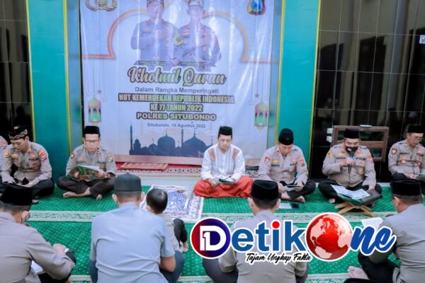 Kompol Pujiarto S.H., M.H. mengatakan Khotmil Quran dilaksanakan memperingati HUT Kemerdekaan Republik Indonesia Ke-77 untuk mendekatkan diri kepada Allah Subhanallahutaala melalui wasilah pembacaan Al-Qur’an sekaligus doa bersama untuk kebaikan institusi Polri serta terciptanya kamtibmas yang kondusif di kabupaten Situbondo.