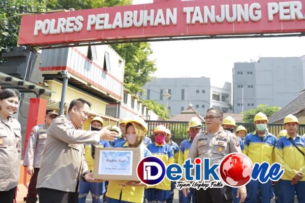 Kali ini Polres Pelabuhan Tanjung bersama Yayasan Kasih PC Polres Pelabuhan Tanjung Perak, Polda Jatim membagikan 65 paket sembako bagi Petugas Kebersihan di kawasan Pelabuhan Tanjung Perak Surabaya.