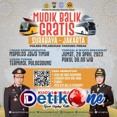 “Polres Tanjung Perak Surabaya akan melayani balik gratis dengan lokasi keberangkatan dari Polda Jatim, tujuan Terminal Pulo Gadung Jakarta,” ungkap AKP Su’ud.