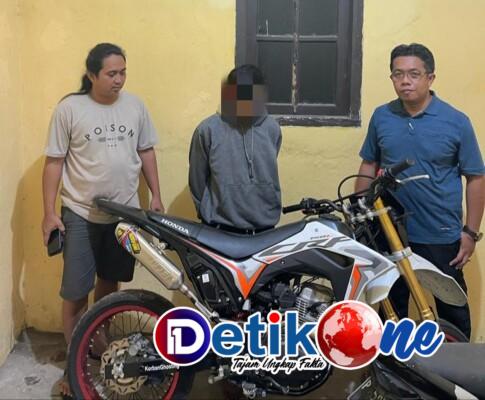 Namun saat mengganti ban motornya tersebut, tersangka melihat sepeda motor Honda CRF, sehingga muncul niat tersangka untuk menukar sepeda motor Sonic dengan sepeda motor CRF milik korban dengan alasan ingin mengambil ATM, selanjutnya korban memberikan kunci sepeda motor CRF tersebur kepada tersangka, kemudian oleh tersangka di bawanya kabur ke Jember.