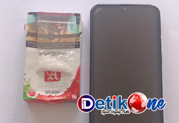 Karena gerak-geriknya yang mencurigakan dan setelah dilakukan penggeledahan badan da pakaian berhasil ditemukan 1 poket narkotika jenis sabu yang disimpan di dalam bungkus rokok merk Sampoerna Mild.