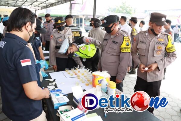 Memastikan hal tersebut Polresta Mojokerto menggandeng BNN Kota Mojokerto untuk melakukan tes urine narkoba bagi seluruh anggota yang dilaksanakan usai apel pagi di lapangan patih gajah mada Mapolresta Mojokerto, Senin (31/10/2022).