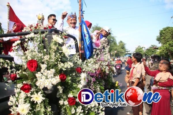 Situbondo, detik1.co.id // Ribuan orang dari berbagai kalangan berdiri di sepanjang jalan Basuki Rahmat Kelurahan Mimbaan, dan di depan Kantor Pusat oleh – oleh dan Pasar Seni (Pasesi) Situbondo. Menyambut kedatangan rombongan kirab Trophy Adipura yang dibawa langsung oleh Bupati H Karna Suswandi, Wabub Nyai Hj Khoirani dan Ketua TP PKK Kabupaten Situbondo, Hj Juma’ati Karna Suswandi. Jum’at (03/03/2023).