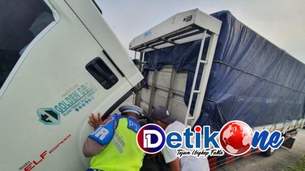 Kanit PJR Jatim III Ditlantas Polda Jatim AKP Imam Sayfudin Rodji mengatakan anggota yang sedang patroli mendapatkan adanya truk boks yang berhenti di bahu jalan tol.