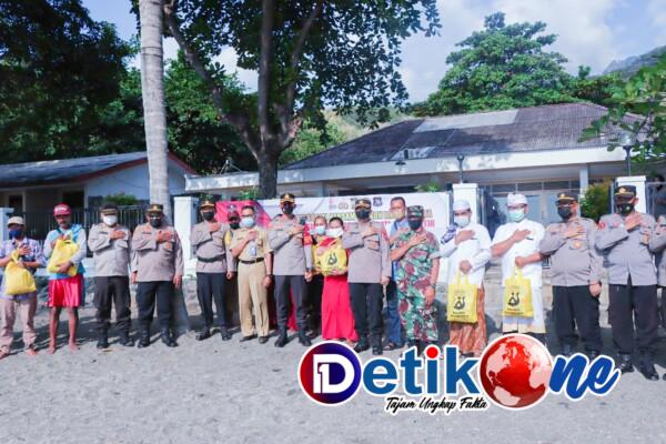 Kapolres Situbondo AKBP Dr. Andi Sinjaya, S.H., S.I.K., M.H. pimpin langsung pembagian bantuan sembako kepada masyarakat pesisir dan nelayan sekitar Kawasan Wisata Bahari Pasir Putih, Senin Sore (27/06/2022).