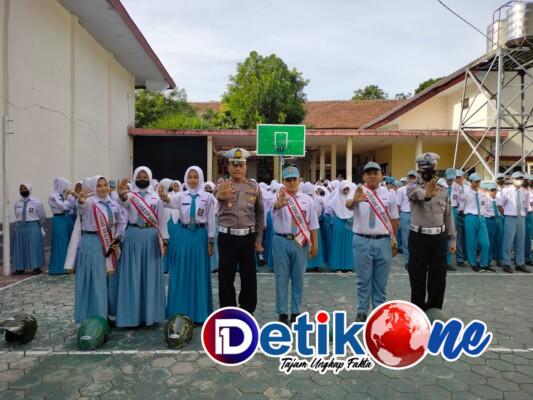 Bondowoso, detik1.com – Satuan Lalu Lintas (Satlantas) Polres Bondowoso menggelar sosialisasi tertib berlalu lintas sekaligus terkait penerapan protokol kesehatan Covid-19 di SMKN 2 Bondowoso.