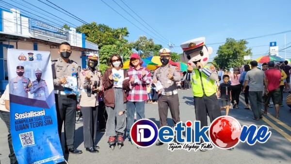 Kegiatan tersebut berlangsung Minggu (03/07/2022) di Area Car Free Day Alun-alun Situbondo. Sambil mengedukasi masyarakat tentang peraturan tertib lalu lintas, sosialisasi buku ujian teori SIM, anggota Satlantas juga mengajak masyarakat olahraga bersama.