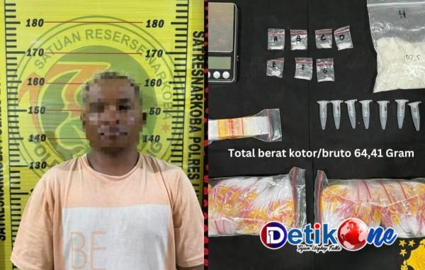 Dalam penangkapan yang dilakukan pada hari Senin, 14 Oktober 2024, Polisi menangkap seorang pelaku dan menyita barang bukti sabu seberat 64,41 gram.