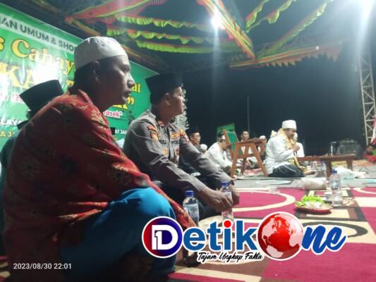 Situbondo, detik1/co.id // Kapolsek Jangkar, IPTU Agus Siswanto,SH. bersama anggota menghadiri kegiatan pengajian umum dan bersholawat bersama Majelis Cahaya Sholawat Lakaf Terak di Area TPI (Tempat Pelelangan Ikan) Desa Jangkar, Kecamatan Jangkar, Situbondo, Jawa Timur. Rabu 30 Agustus 2023 sekira pukul 19.30 WIB.