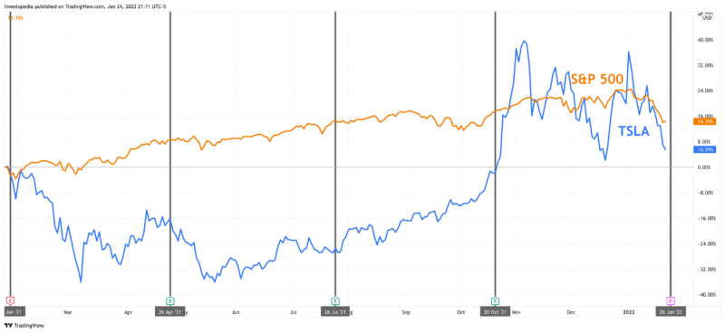 Shares of Tesla have underperformed the broader market over the past year. The stock’s performance gap originally widened dramatically in the first four months of the past year. But starting around the beginning of June 2021, that performance gap gradually narrowed until late October when the stock pulled ahead of the market. The stock’s movement has been extremely volatile over the past several months and is currently lagging the market. Tesla’s shares have provided a total return of 5.6% over the past year, below the S&P 500’s total return of 14.4%.