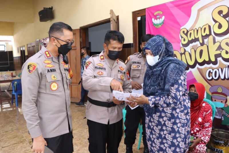 “Kami mengajak masyarakat untuk vaksin untuk kekebalan tubuh, bagia masyarakat yang kesulitan vaksin karena tempat tinggalnya jauh dari pusat pelayanan kesehatan bisa menghubungi aparatur pemerintah setempat nanti akan langsung didatangi oleh Bhabinkamtibmas atau Babinsa dan Tenaga Kesehatan untuk dilakukan vaksin door to door,“ terang AKBP Dr. Andi Sinjaya, S.H., S.I.K., M.H.