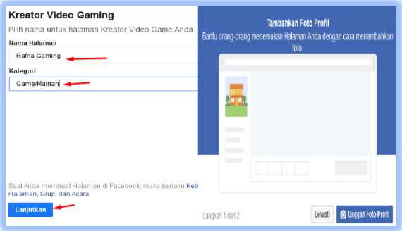 - Beri nama, kategori, foto profil, serta sampul halaman