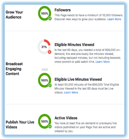 Untuk menampilkan iklan di siaran langsung facebook kita harus memenuhi kriteria. Yakni :