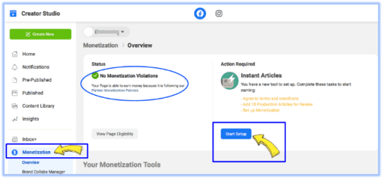 - Buka Creator Studio Facebook. Pilih menu Monetisation pada menu sebelah kiri,