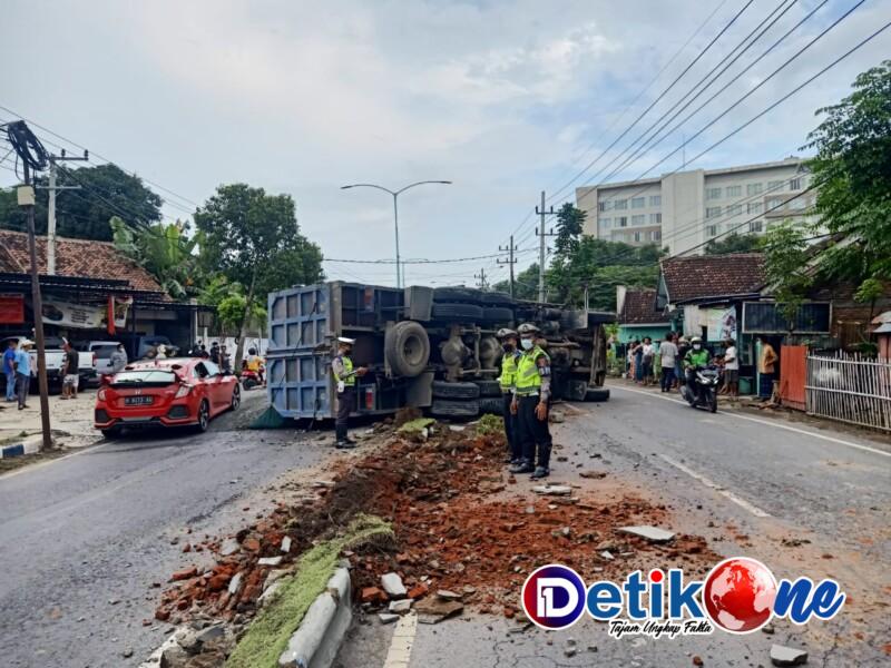 Truck Bermuatan Pasir Oleng Menabrak Pembatas Jalan