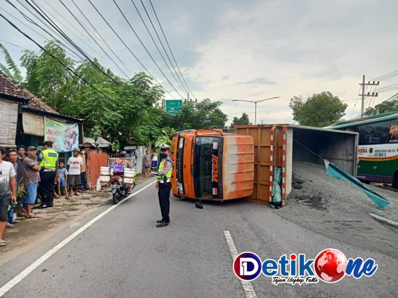Truck Bermuatan Pasir Oleng Menabrak Pembatas Jalan