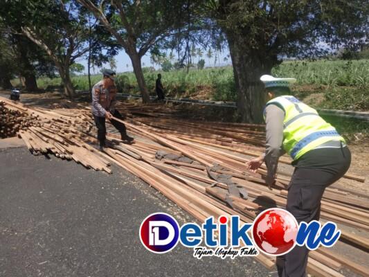 Situbondo, detik1.co.id // Respon cepat di lakukan Kepolisian Sektor (Polsek) Jangkar mendatangi tempat kejadian perkara kecelakaan tunggal truk pengangkut kayu di jalan Raya Banyuwangi sebelah barat selatan TPU Agung Salimin Ds.Curah Kalak, Kecamatan Jangkar, Situbondo, Jawa Timur, Selasa 22 Agustus ,2023.
