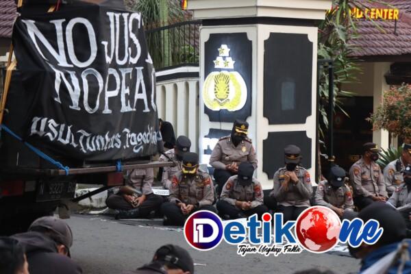 Malang, detik1.com – Aksi damai bertajuk ‘Tutup Jalan 135 menit’ dilakukan oleh ratusan Aremania di 3 lokasi, yakni Simpang Empat Karanglo Singosari, depan Mako Sat Brimob Batalyon B Pelopor Ampeldento, dan depan Mako Polres Malang jajaran Polda Jatim di Kepanjen, Kamis (08/12/2022).