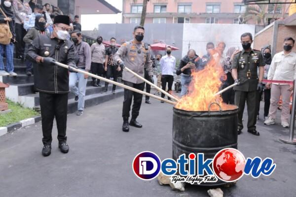 Kota Malang, detik1.com – Polresta Malang Kota yang bersama Forkopimda Kota Malang, Forum Kerukunan Umat Beragama (FKUB) dan Badan Narkotika Nasional (BNN) Kota Malang, memusnahkan sejumlah barang terlarang, di halaman depan Ballroom Polresta Malang Kota, Kamis (24/11/2022).